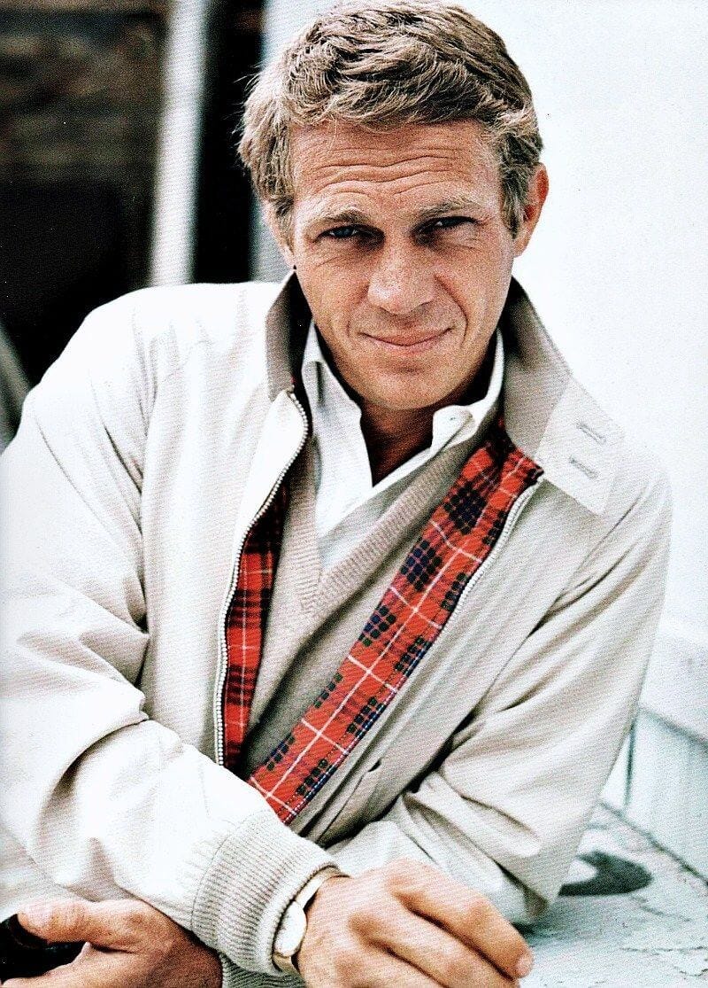 What’s perhaps most singular about the Harrington is how unsingular it is—that is, it doesn’t belong to any one subculture or time period, but rather appears Zelig-like at fashionable points across history. It’s a style that has felt as much at home with British punk rockers as American Ivy Leaguers, mods and presidents. Arnold Palmer was known to sport an imitator of the G9 from Grenfell, originally known as the Golfer. Ryan O’Neill’s character on Peyton Place wore one, too, such that some American clothiers started marketing the jacket by his name. Perhaps the biggest moment for the Harrington jacket, though, came when Steve McQueen appeared on the cover of Life Magazine, casually riding a motorcycle in an enviably cool, off-white version.